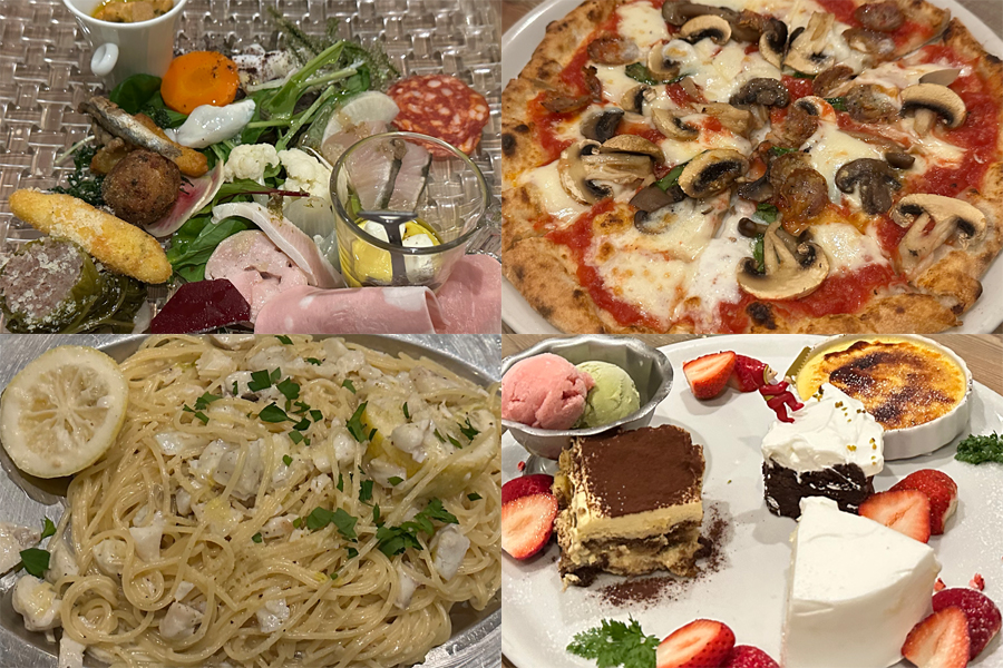 会場は恒例となりました「薪窯イタリアンアルベロ」さん。前菜から始まって、ピッツァ、パスタ、デザート、どれも安定のおいしさです🍽️