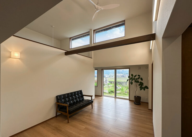 昼間は天井からの外光、夜は間接照明の明かりで心地よい雰囲気